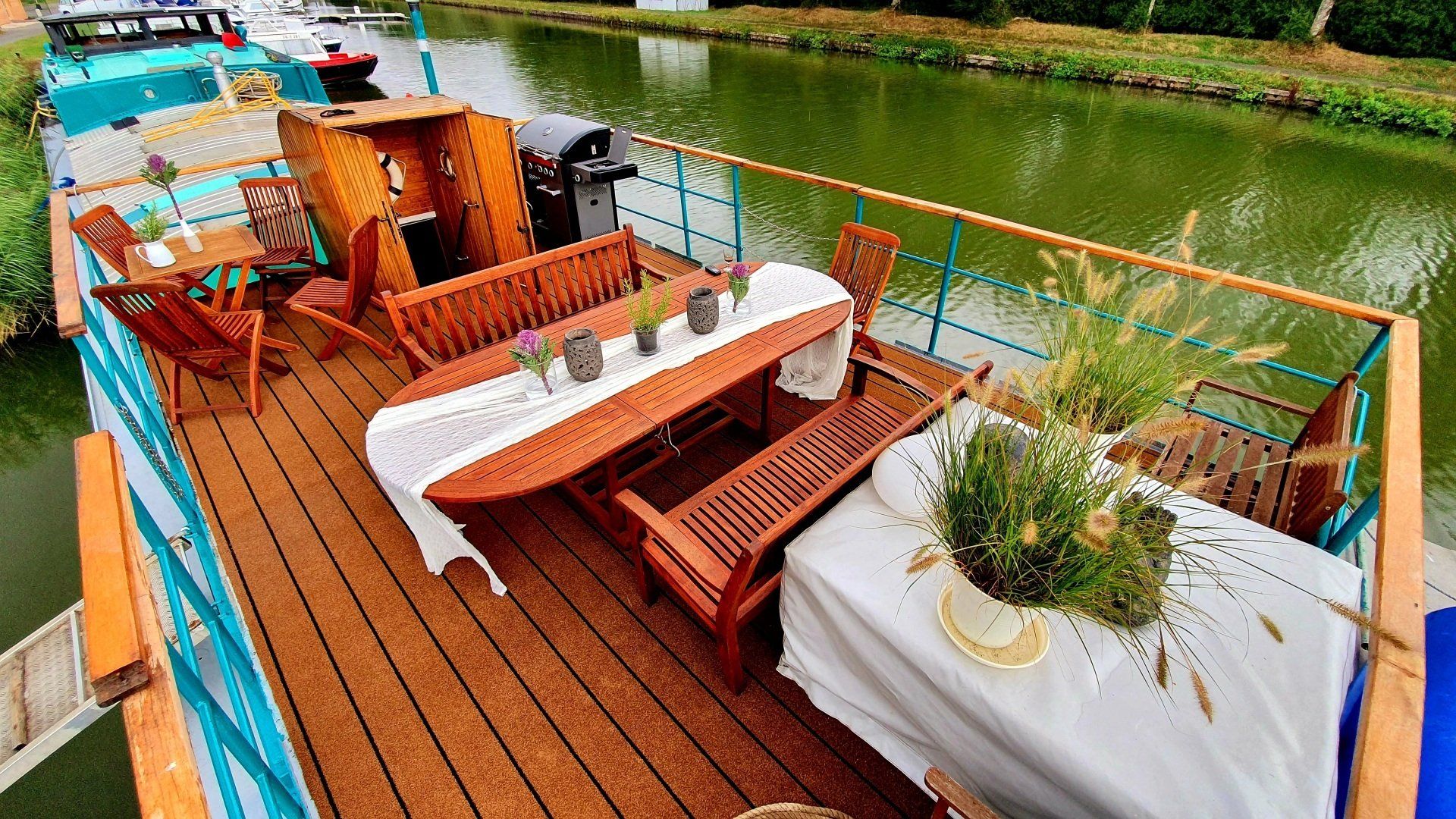 MS POSEIDON als festliegendes Ferienhaus mieten. Genießen Sie auf unserem liebevoll restauriertem Schiff mitten in einem Naturschutzgebiet mit angrenzendem See das schöne Umfeld und die Ruhe mit bis zu 13 Personen.