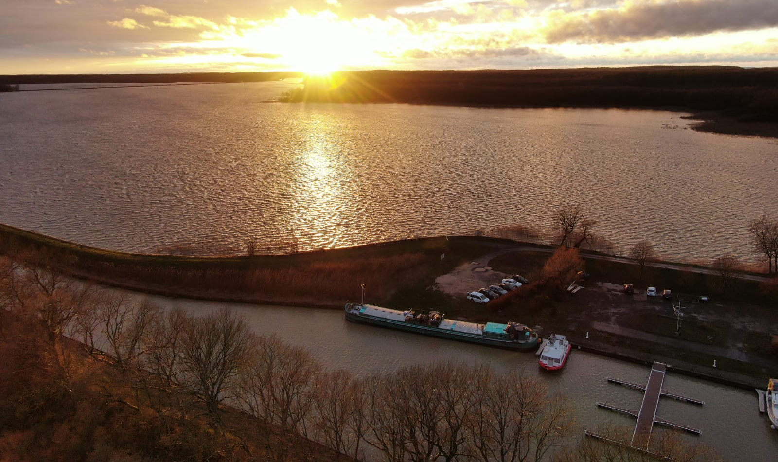 In direkter Nachbarschaft zum Schiff befindet sich ein traumhafter See, der zum Schwimmen, Baden, Angeln, Wandern oder Wassersport einlädt.